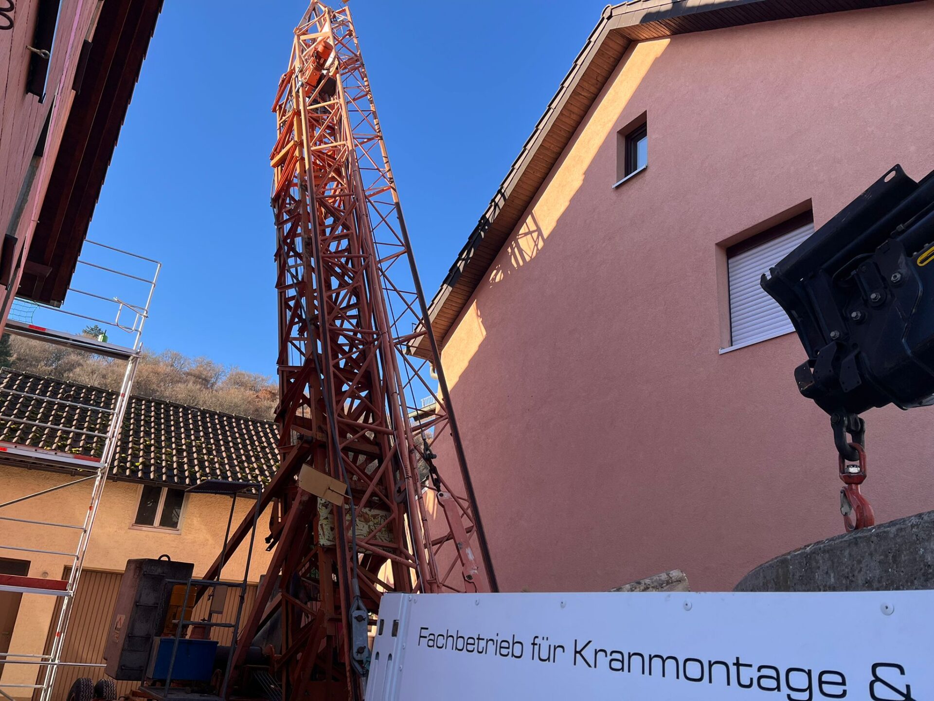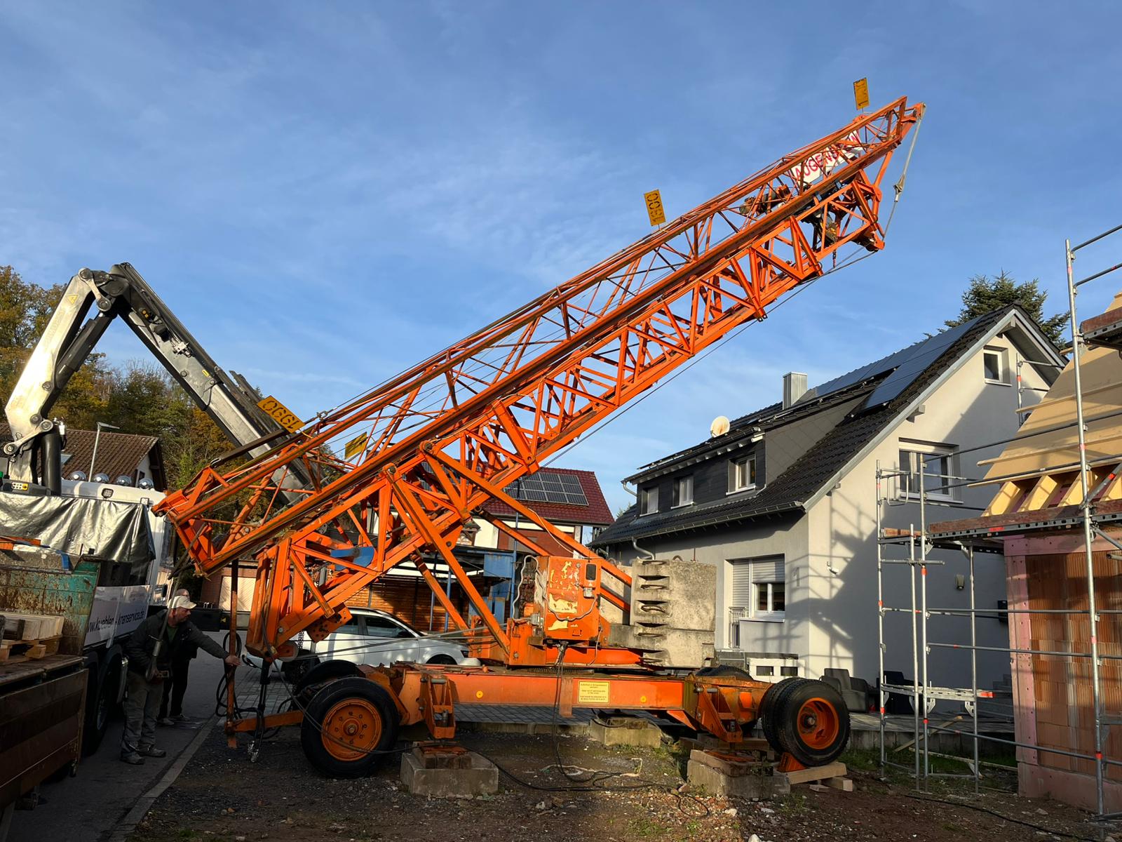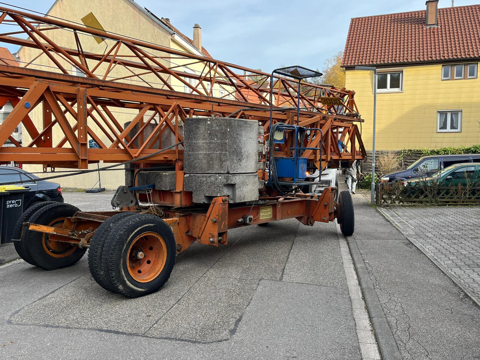 Kundenkran Peiner 203/1 Abbau nach abgeschlossener Baumaßnahme in Dennach. Anschließend Transport zur Zwischenlagerung bis zur nächsten Baustelle 💪