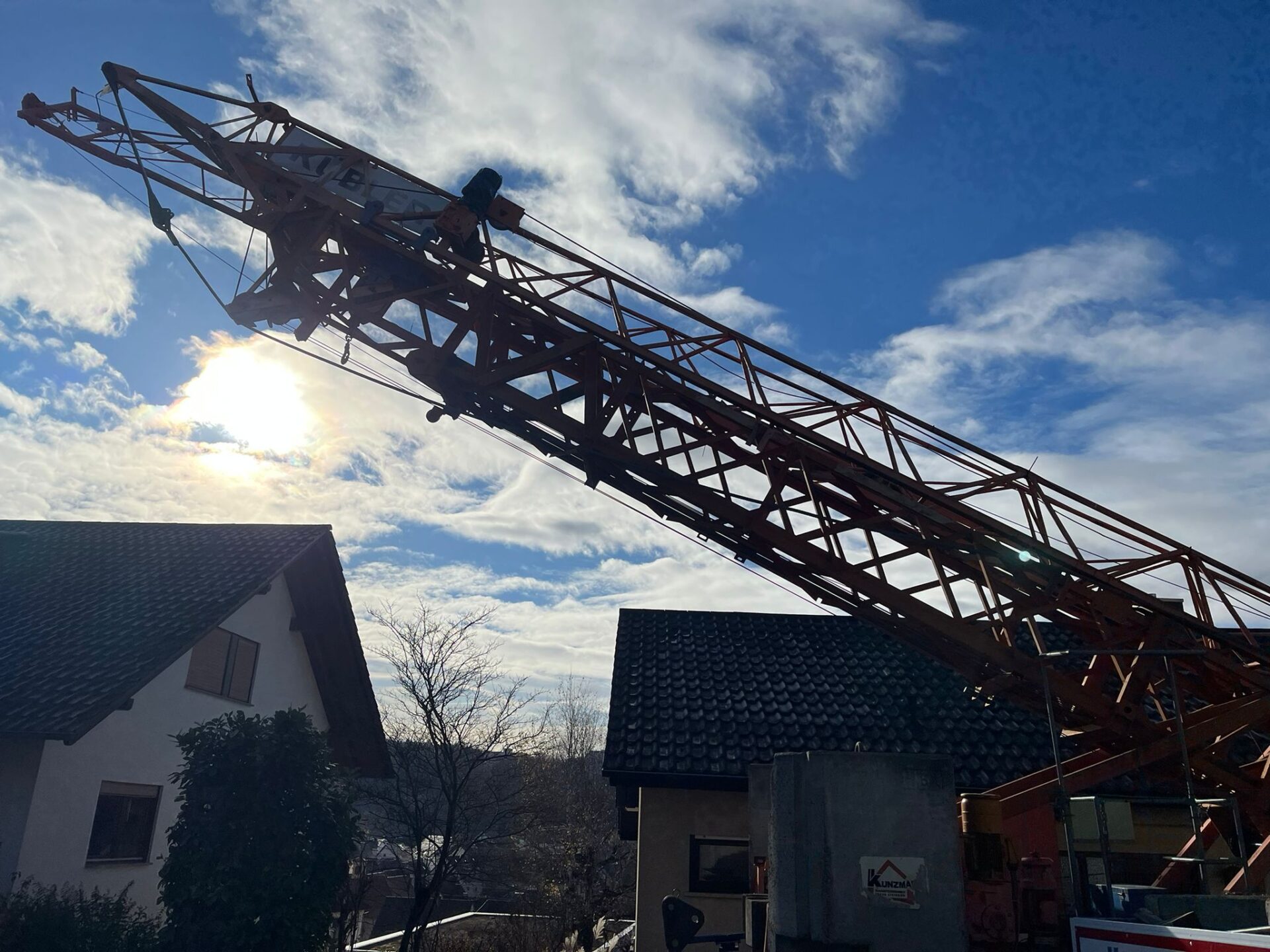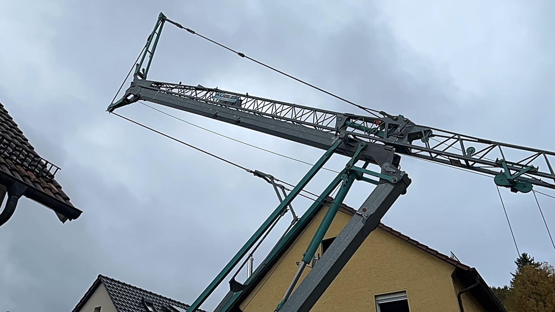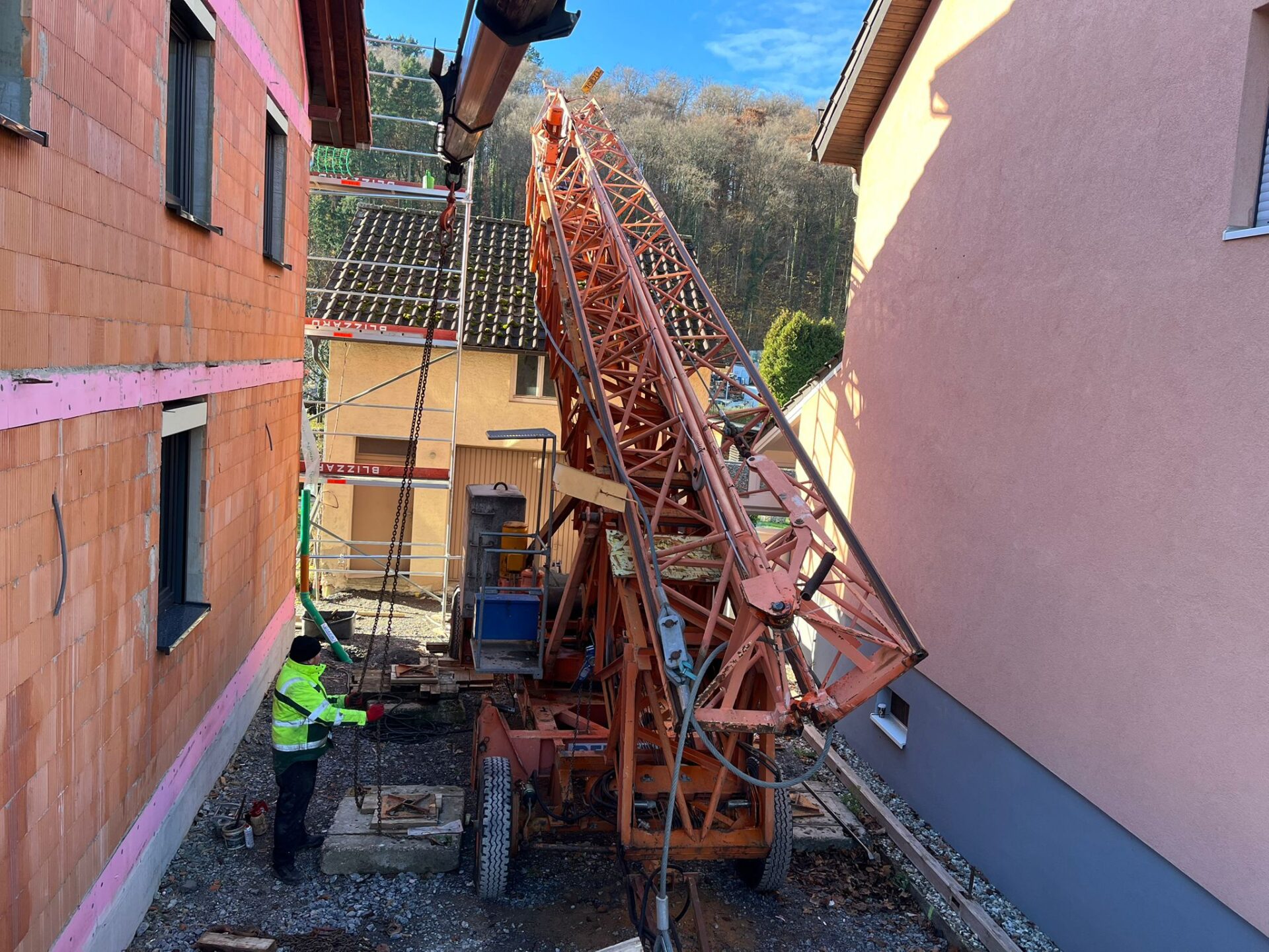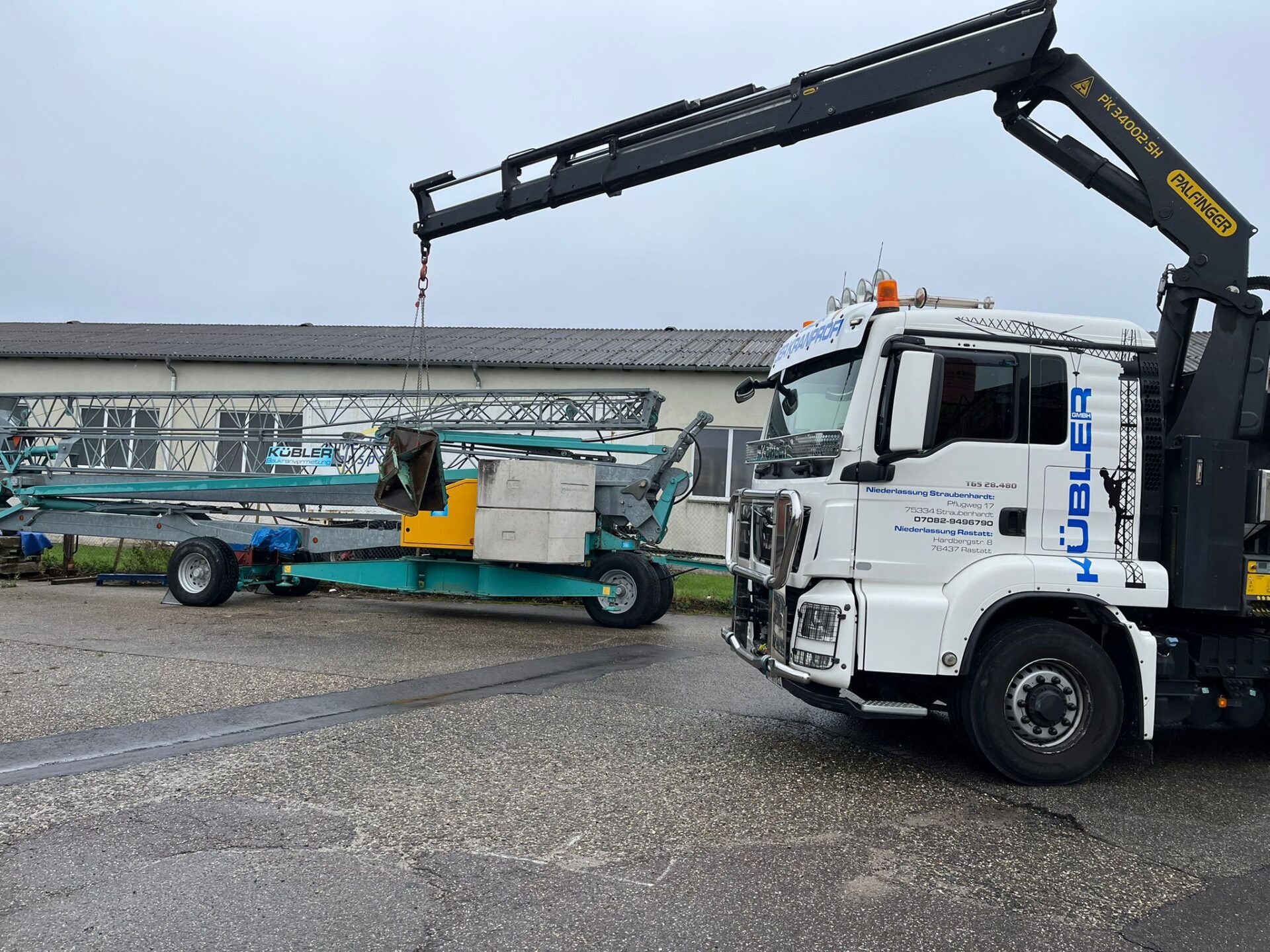 Kundenkran Peiner 203/1 Abbau nach abgeschlossener Baumaßnahme in Dennach. Anschließend Transport zur Zwischenlagerung bis zur nächsten Baustelle 💪