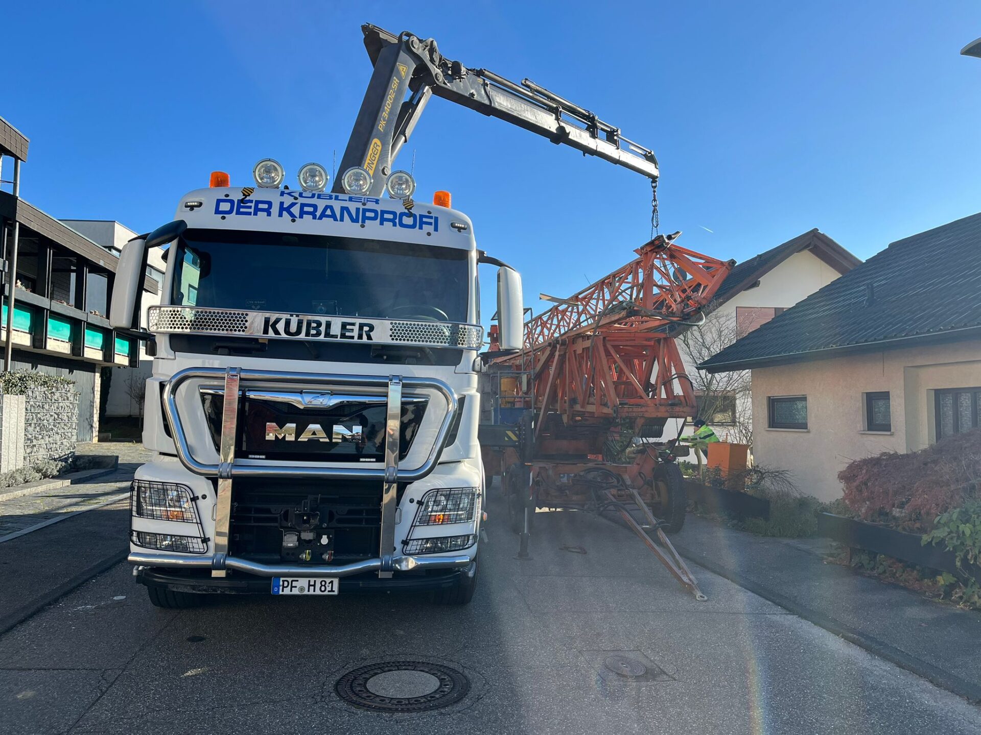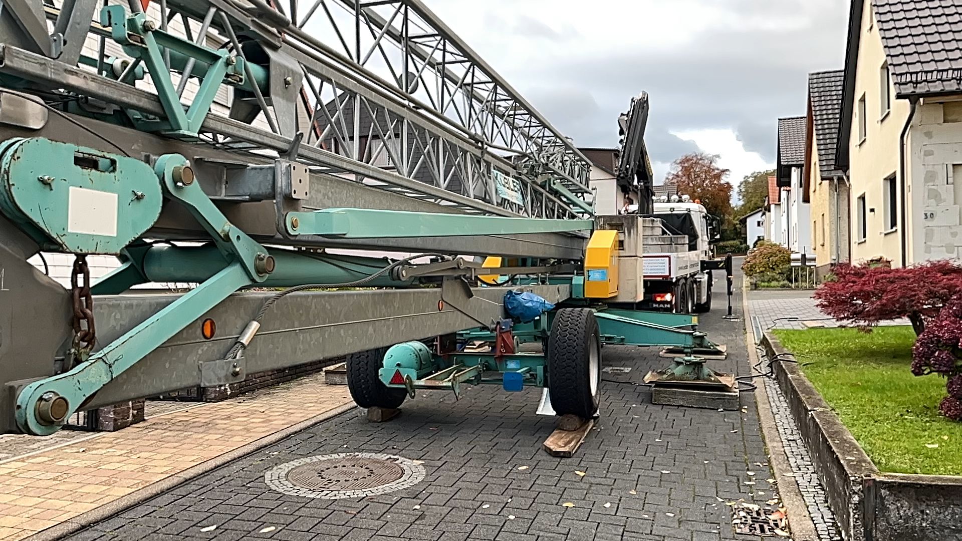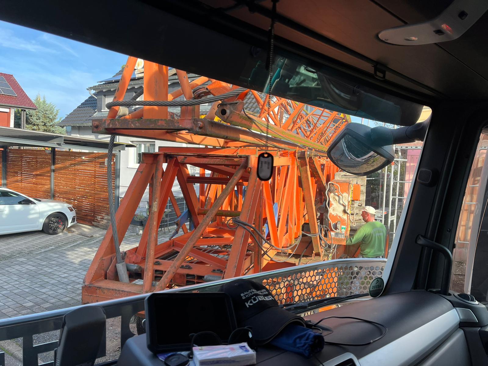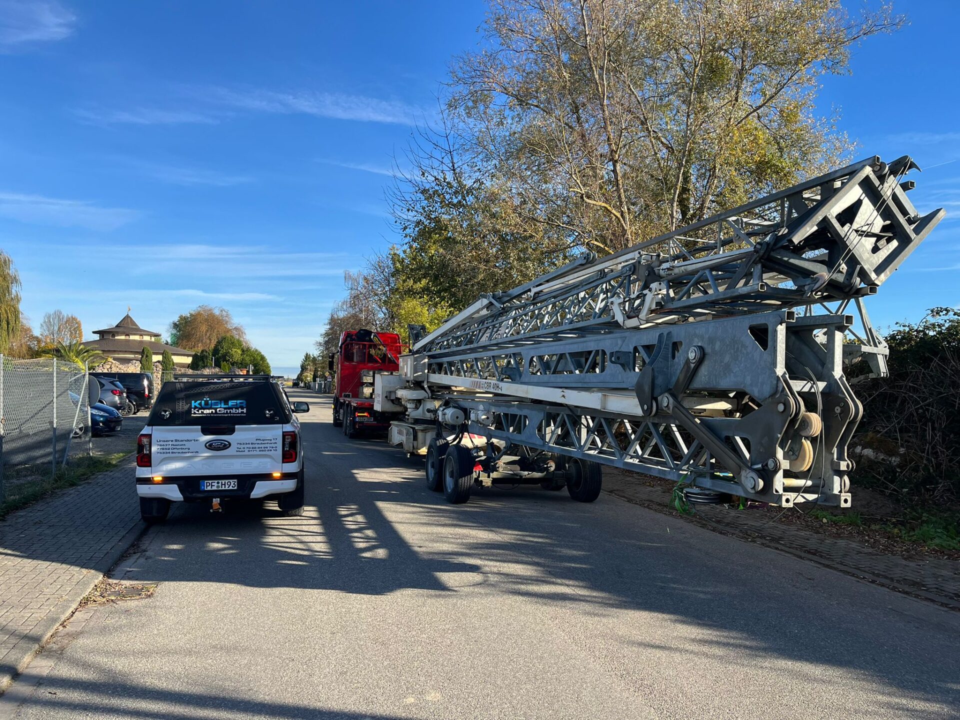 Nun kam auch Kran Nr. 2 zur Demontage und Abtransport. Er wird zwischengelagert und bekommt neue Hubseilumlenkrollen. Danach gehts wieder auf die nächste Baustelle in Offenburg 💪