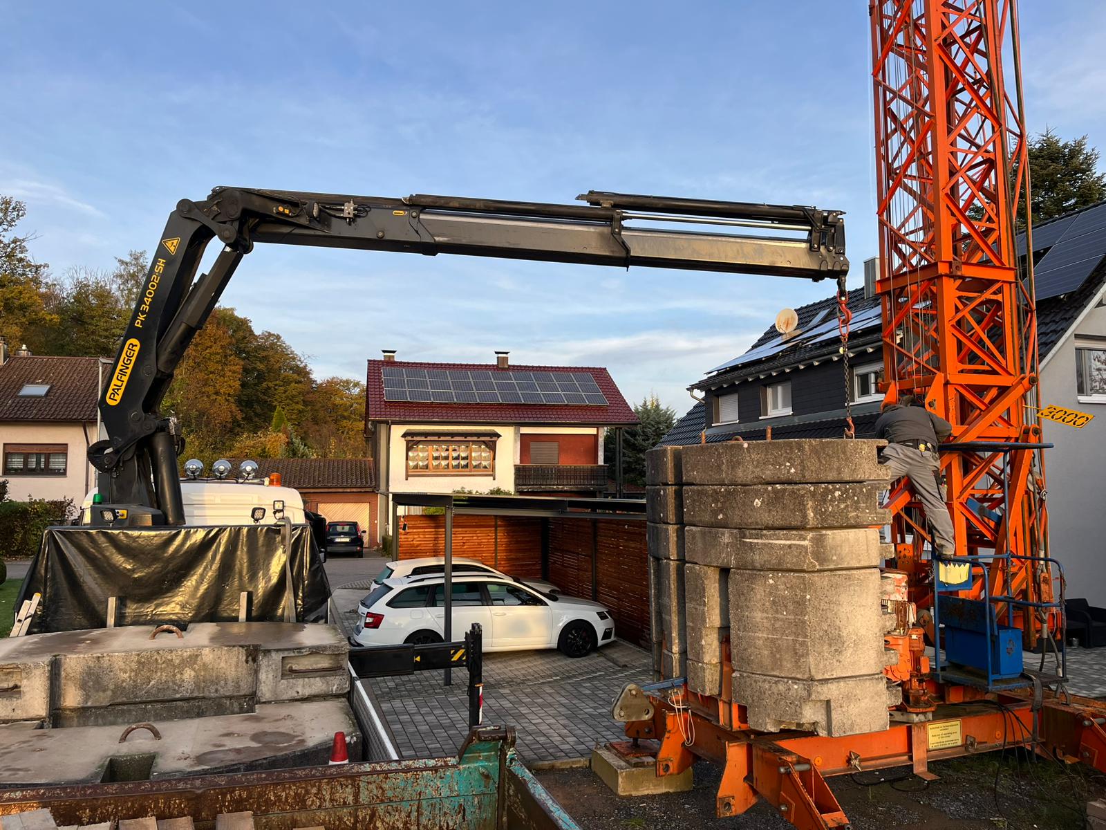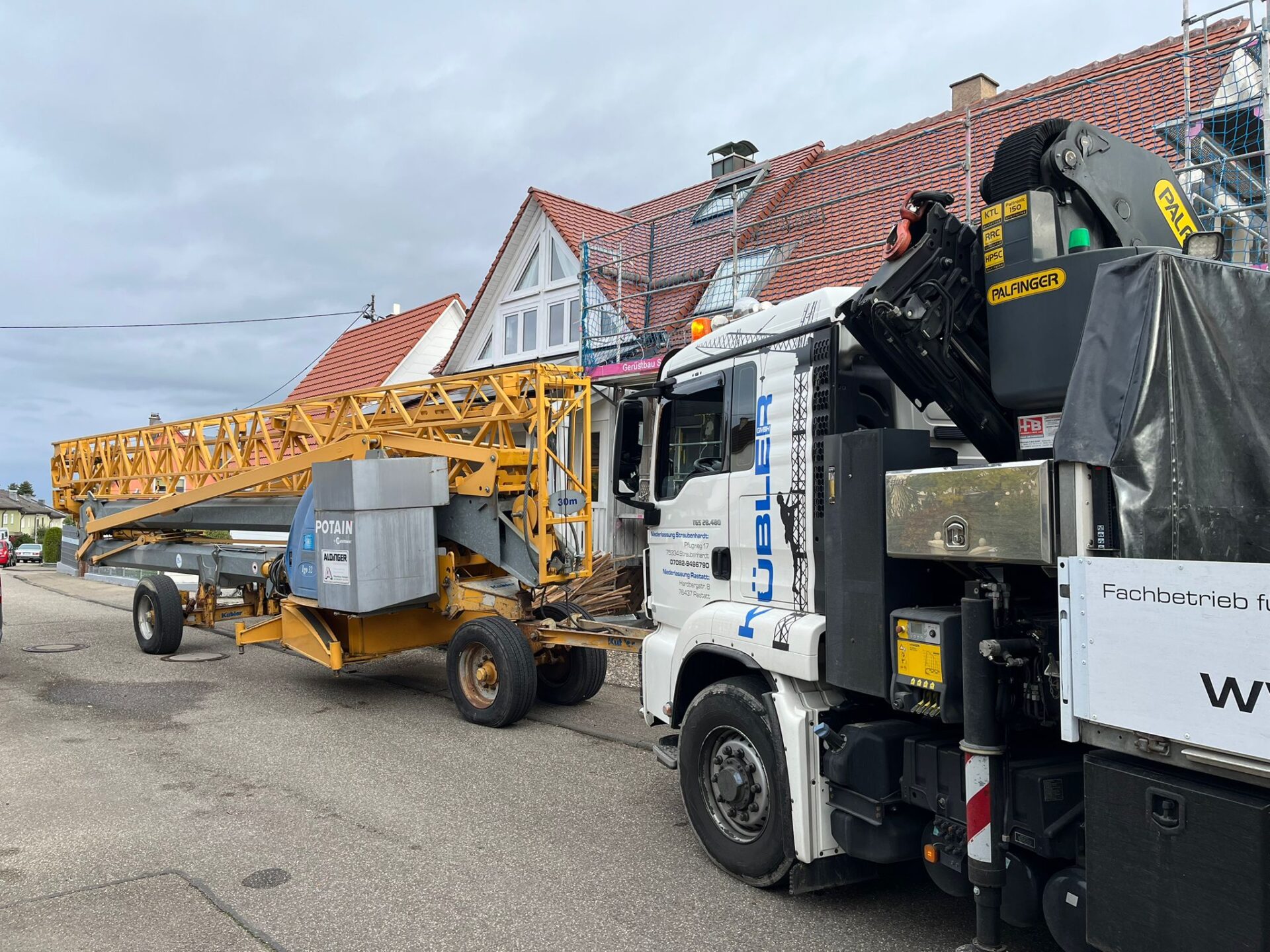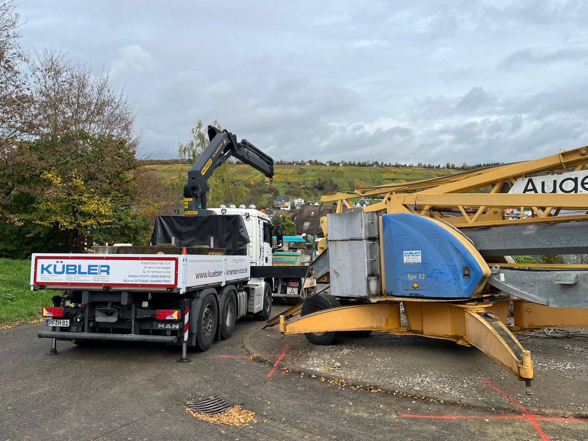 Freitag nach Fertigstellung der Baumaßnahme in Eisingen den PKZ 3610 abgebaut und zur neuen Baustelle transportiert. Dort wird er nach den Erdarbeiten wieder für unseren Kunden montiert.