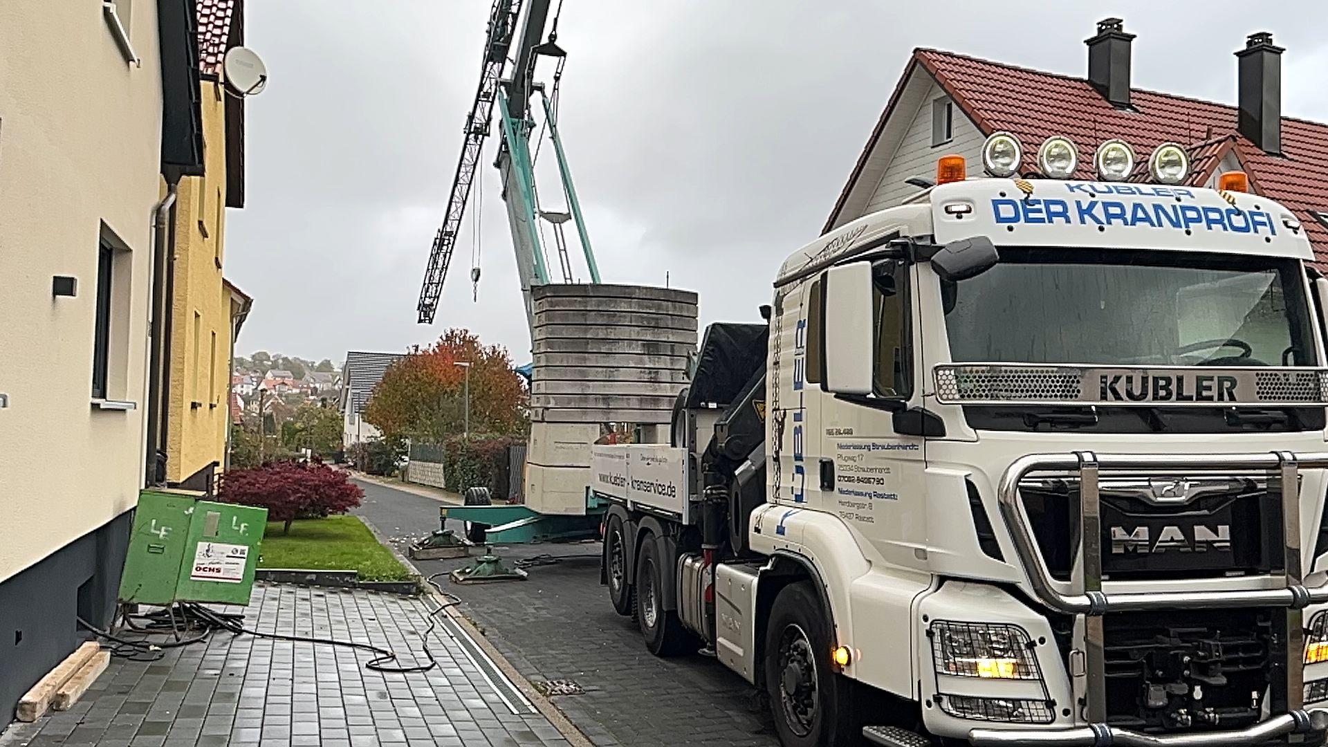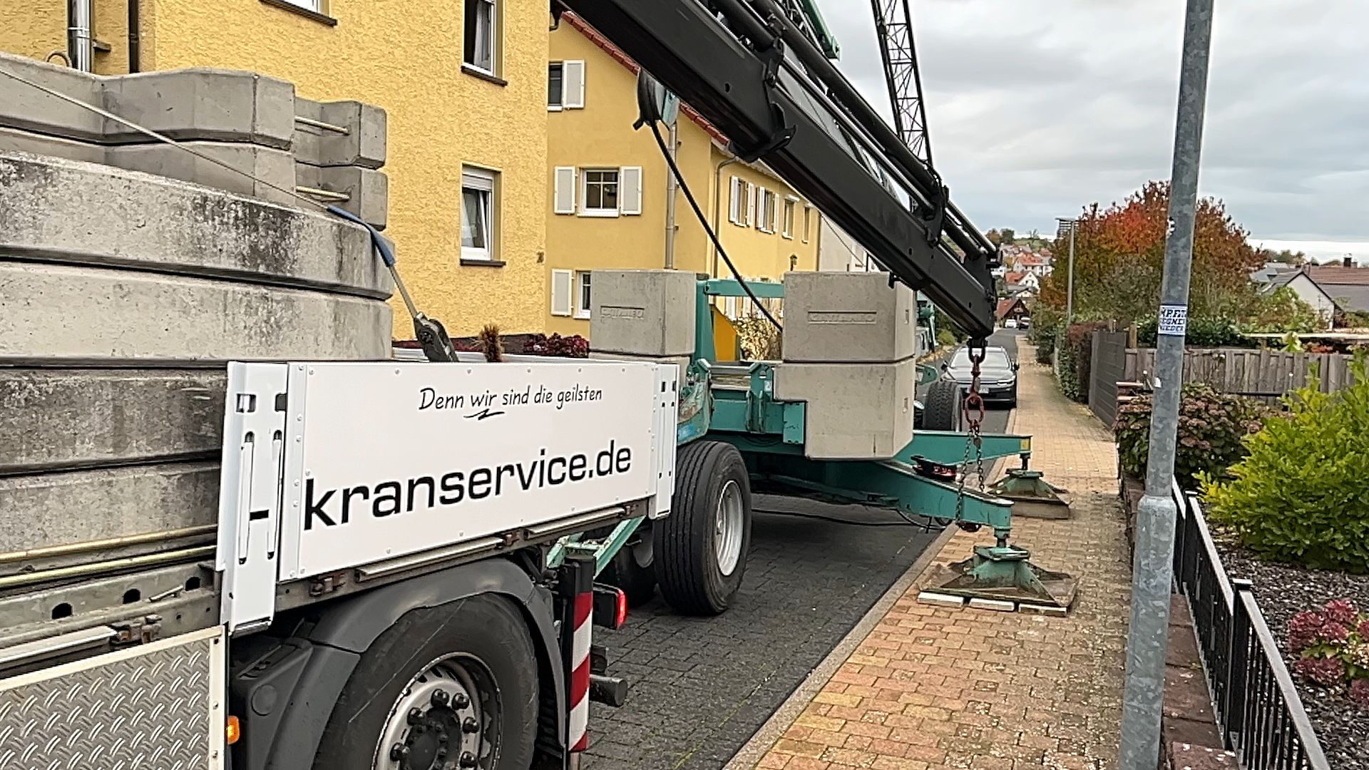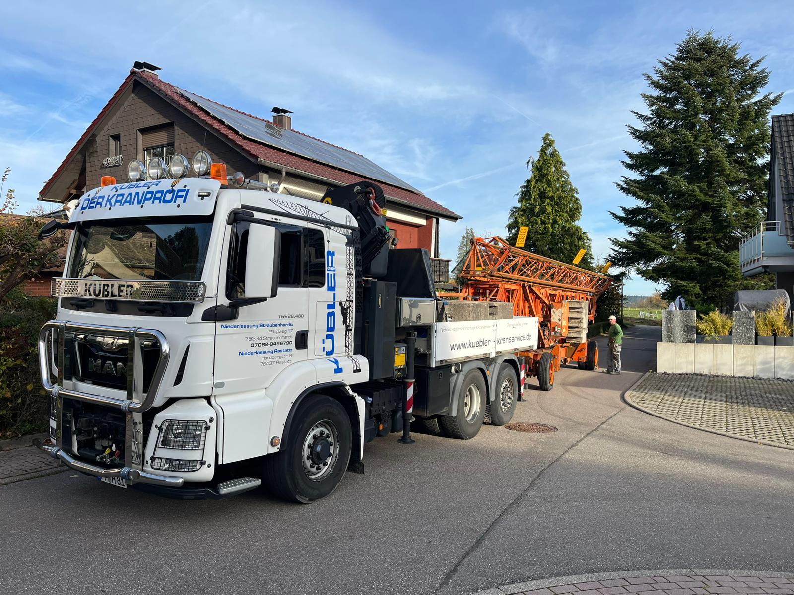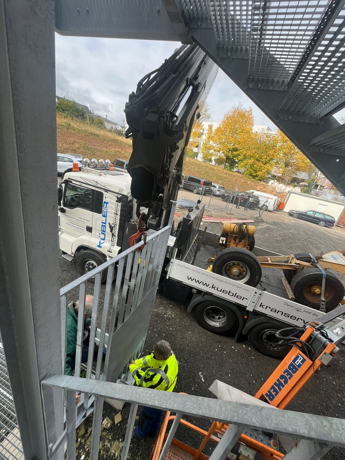 Freitag nach Fertigstellung der Baumaßnahme in Eisingen den PKZ 3610 abgebaut und zur neuen Baustelle transportiert. Dort wird er nach den Erdarbeiten wieder für unseren Kunden montiert.